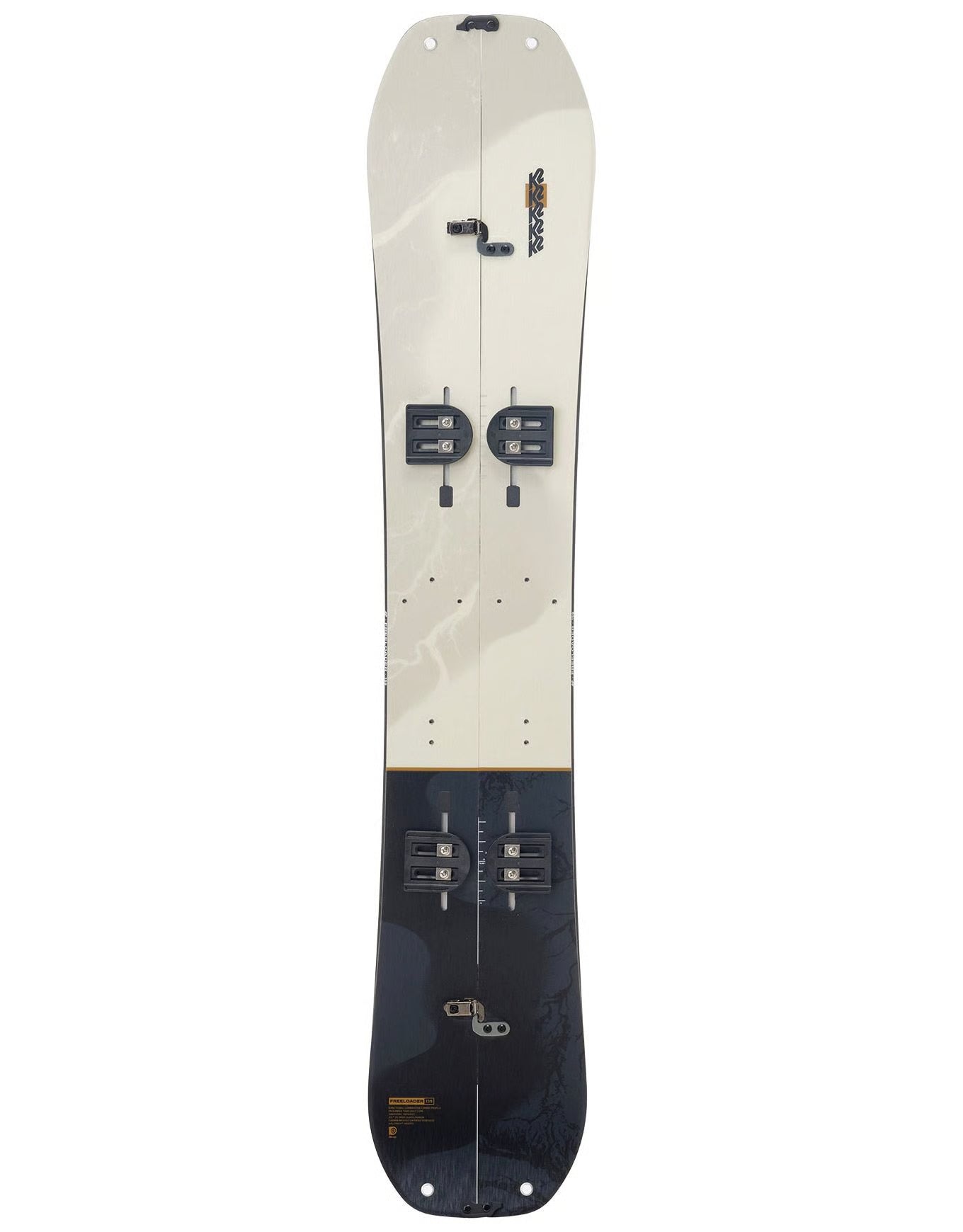 The K2 Freeloader Splitboard package is built on the same unisex outline as our Marauder Split. A bit of taper in the tail of the Freeloader helps it sink in the deep stuff, while the wider nose stays up well above the surface and blasts through choppy snow.